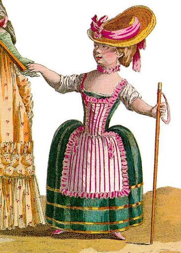 | Keywords: 1778-Bourgeois-daughter-fashion.jpg Outfit of the pre-teen daughter of a French bourgeois from Galerie des Modes 1778 Plate 45 detail a green dress with large panniers and a white striped pseudo-apron thing over it By modern standards it seems quite impractical for a child of that age -- and the clothes of an actual aristocrat young girl of the same age might possibly have been even more extreme Compare the adult aristocratic dress at Image 1778-jeune-dame-de-qualite-en-grande-robe jpg This was about a decade before the idea of sparing children most of the indignities of adult fashions took hold compare the attire of Image Marie Antoinette-children-1785-6-Wertmuller jpg in 1785-1786 Image Battledore - Youthful Sports png in 1804 Image Passer-payez-Boilly-ca1803 jpg in ca 1803 Image Philipp Otto Runge 003 jpg in 1805-1806 Image Jean-Baptiste Wicar 001 jpg in 1809 or Image Children-dancing-ca-1820 jpg ca 1820 Also compare en Image Watteau the dance jpg / Image Antoine Watteau 013 jpg or Image Dansande barn målning av Lorens Pasch dy jpg or Image William_Hogarth_047 jpg to see how little things changed from 1718 to 1742 to 1778 Galerie des Modes 1778 18th century artists possibly the same who did File 1778-jeune-dame-de-qualite-en-grande-robe jpg PD-old-100 Galerie des modes Fashion in art 1770s dresses Multicolor dresses Women smiling in art Girls smiling while standing Standing girls in art People with staffs in art Female headgear in art Details of paintings Girls' clothing Aprons in art Fashion in 1778 |