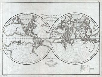 Keywords: 1779 Pallas and Mentelle Map of the Physical World - Geographicus - World-mentelle-1779.jpg This is a highly unusual 1779 map of the world exhibiting a very peculiar physical topography that reveals mountain ranges both on land and under the sea The curious undersea mountain ranges displayed here was drawn by Abbe Mongez to illustrate the geographical theories of Peter Simon Pallas a German polymath living in Russia who speculated that mountain ranges originated from a series of interterrestial explosions volcanoes many of which are noted on the map as asterisks Aside from Pallas ™s unusual marine topography this map follows many of the speculative cartographic conventions of the late 18th century These include the presence of a large inland sea in the western part of North America a series of navigable channels in modern day Canada harkening to the mythical Admiral De Fonte ™s journals and a mountainous Nile source in Africa Van Diemen ™s Land or Tasmania is attached to the mainland of Australia A southern continent is only tenuously suggested by two speculative landmasses shown in the southern Indian Ocean and just south of Tierra del Fuego This map was first drawn by Abbe Mongez then engraved by Ambrose Tardieu for inclusion as title plate number 0 or folio 1 in Mentelle ™s 1779 Atlas Universel A curious side note The Abbe Mongez who drew this map was the geologist and naturalist on La Perouse ™s ill-fated expedition to the Pacific The Perouse expedition shipwrecked in 1788 on the island of Vanikoro and after living on the island for a short time vanished entirely Recently the remains of the Perouse wreckage including a mysterious skull were discovered on the Vanikoro reefs Forensic scientists have reconstructed the facial features of the skull which many believe to be none other than the Abbe Mongez 1779 dated Size in 17 13 object history credit line accession number World-mentelle-1779 Mentelle E <i>Atlas Universel<i/> Paris 1779 Geographicus-source PD-Art-100 Maps by Edme Mentelle 1779 maps Old maps of Earth's hemispheres Jean-André Mongez Peter Simon Pallas Maps in French Maps of mountains Seamounts Submarine volcanoes Maps of submarine volcanoes |