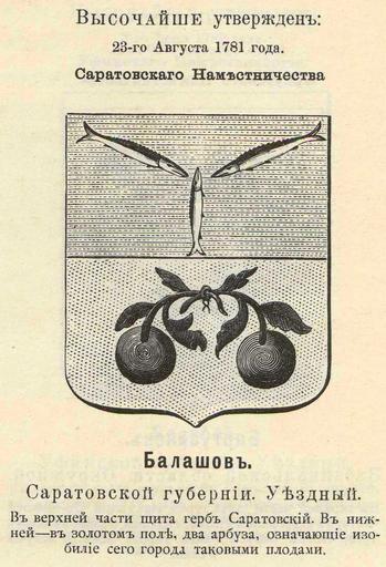| Keywords: Балашов 1781 из Винклера.jpg Official Russian Empire coat of arms Balashov Ге б Российской Импе ии уездного го ода Балашов Са атовской губе нии с официальным описанием в Ге бовнике Винкле а П П фон-Винкле Ге бы го одов губе ний областей и посадов Российской Импе ии внесенные в Полное Соб ание законов с 1649 по 1900 год Дозволено цензу ою С -Пете бу г 20 Июля 1899 года Издание книгото говца Ив Ив Иванова С -Пете бу г Типог афия И Комелова П яжка д 3 1899 \ Scanned 1781 \ 1899 published П П фон Винкле \ Pavel von Vinkler PD-old PD-RusEmpire PD-RU-exempt coats of arms Gerbovnik Vinklera - City CoAs Coats of arms of Saratov Governorate Fish in heraldry |