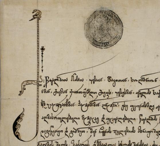 | Keywords: 1783. კათალიკოს-პატრიარქ ანტონ I-ის წყალობის წიგნი.jpg ka 1783 კათალიკ ს-პატრიარქ ა ტ I-ის წყალ ბის წიგ ი ეკლესიის აზ აურიშვილ ზაქარია ქადაგისშვილისადმი 2009-12-25 http //illuminateddocument ge/ge/album/index/1/georgian Illuminated Historical Documents from Georgian Archives Digitized by the National Center of Manuscripts Tbilisi Georgia PD-Art Uploaded with UploadWizard 1783 in Georgia Mkhedruli royal charters Mkhedruli letter Kani | ||||