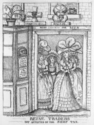 | Keywords: 1787-prostitutes-caricature.jpg  1787 caricature of prostitutes giving an idea of their clothing and attire When in public they were more often decked out in faded finery worn in an inappropriate context rather than in clothing that would seem particularly revealing or sexy in 21st-century eyes Note the fire insurance company badge mounted on the building; at that time each fire insurance company had an associated firefighting unit which would usually only put out fires at establishments of paying customers ---- Bibliographic information found on LoC site TITLE Retail traders not affected by the shop tax CALL NUMBER PC 3 - 1787--Retail traders A size P P REPRODUCTION NUMBER LC-USZ62-132976 b w film copy neg No known restrictions on publication SUMMARY Print shows three women standing inside the entrance to an establishment labeled Neat lodgings for men over which is a bust of a Turk's Head on a pedestal labeled Bagnio ; a notice in the window states For the benefit of the Dowager Eve this every evening by permission of their Worships such things are MEDIUM 1 print etching ; 27 4 x 20 cm plate CREATED/PUBLISHED London Pub'd for the proprietor by E Macklew No 9 Haymarket W Moore No 48 New Bond Street 1787 March 2nd NOTES Title from item Watermark on center of paper DLC Attributed to William Dent Forms part of British Cartoon Collection Library of Congress SUBJECTS Prostitution--England--1780-1790 Taxes--England--1780-1790 Brothels--England--1780-1790 FORMAT Cartoons Commentary British 1780-1790 Etchings British 1780-1790 REPOSITORY Library of Congress Prints and Photographs Division Washington D C 20540 USA DIGITAL ID b w film copy neg cph 3c32976 http //hdl loc gov/loc pnp/cph 3c32976 CARD 2003674093 Edited from image http //memory loc gov/master/pnp/cph/3c30000/3c32000/3c32900/3c32976u tif on the Library of Congress website http //hdl loc gov/loc pnp/cph 3c32976 1787-03-02 Attributed to William Dent PD-old-100 1780s fashion 1787 cartoons 18th-century caricatures Feathered headdresses in art female Line art Panniers clothing in art Prostitutes in art Prostitution in the United Kingdom |