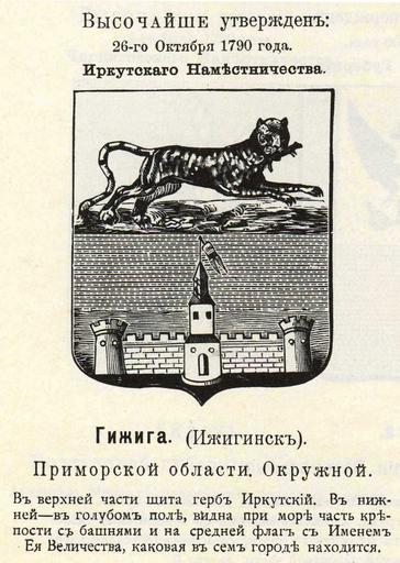| Keywords: Гижига 1790 из Винклера.jpg Official Russian Empire coat of arms Ге б Российской Импе ии ок ужного го ода Гижига Ижигинск П имо ской области в 1790 - И кутского наместничества с официальным описанием в Ге бовнике Винкле а П П фон-Винкле Ге бы го одов губе ний областей и посадов Российской Импе ии внесенные в Полное Соб ание законов с 1649 по 1900 год Дозволено цензу ою С -Пете бу г 20 Июля 1899 года Издание книгото говца Ив Ив Иванова С -Пете бу г Типог афия И Комелова П яжка д 3 1899 \ Scanned 1843 \ 1899 published П П фон Винкле \ Pavel von Vinkler PD-old PD-RusEmpire PD-RU-exempt coats of arms Gerbovnik Vinklera - City CoAs Coats of arms of Irkutsk Governorate Coats of arms of Primorsk Oblast Towns in heraldry Babr Coats of arms of cities and villages of Irkutsk Oblast |