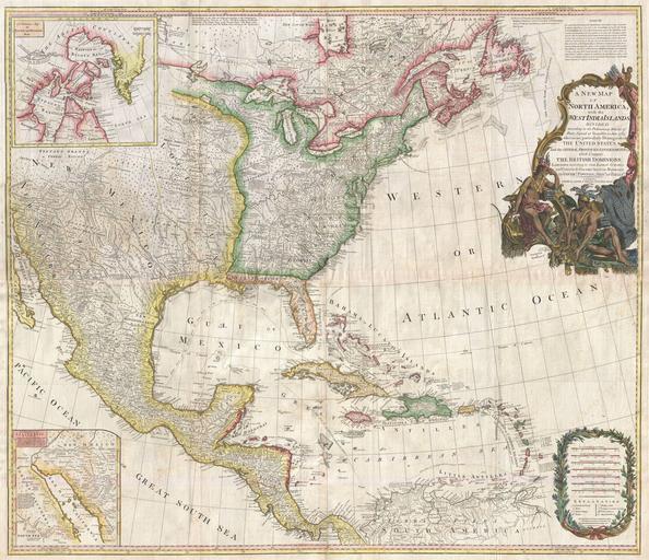 | Keywords: 1794 Pownell Wall Map of North America and the West Indies - Geographicus - NorthAmerica-pownall-1794.jpg An extraordinary monumentally proportioned 1794 map of North American by Governor Pownell Issued shortly after the end of the American Revolutionary War this map details the newly formed United States the British dominions in Canada the French territory of Louisiana the West Indies and Spanish holdings in Mexico Florida and Central America As one might expect from a map of this size the detail throughout is extraordinary All text is in English We begin our examination of this map in the newly formed post colonial United States The United States at this time extended from the Pacific to the Mississippi River and from Georgia to the Great Lakes and Maine The early state boundaries roughly conform to their original colonial charters Virginia North Carolina and South Carolina are drawn with indefinite western borders suggesting claims to further unexplored land beyond the Appellation Mountains By this time most of the boundary issues in the New England states had been resolved though there remained some vagaries regarding the Massachusetts Connecticut border and though Vermont is noted textually its boundaries are not drawn in At this time there were also some unresolved issues regarding the national borders between Maine and Nova Scotia In Pennsylvania the western border displays some surveying confusions that would not be resolved until the early 1800s and the creation of Ohio It is beyond the old colonial centers where this map really gets interesting Pownall offers copious notations on the lands and territories between the Appellation range and this Mississippi River In some cases he offers commentary on the various indigenous tribes including the Creeks Chickasaws Chocktaws Senekas Eriez Delawares Shawnee Iroquois Algonquians Ottawas and others The cartographer was clearly concerned with the development of these western regions and offers copious commentary on fit sites for factories the alliances and temperaments of tribes and the navigability of various river systems particularly the Mississippi and Ohio The Great Lakes are mapped with considerable accuracy though several apocryphal islands do appear in Lake Superior The most notable of these are Phelipeaux and Pontchartrain Phelipeaux Island first appeared in French maps of this region in the 1740s Later it was mentioned as a boundary marker in the 1783 Treaty of Paris which ended the American Revolutionary War The nonexistence of these islands was not conclusively proven until about 1820 To the west of the Mississippi we pass into the largely unknown lands of the Great Plains In what is roughly modern day Missouri between Memphis and St Louis there is an interesting note suggesting that this region is Full of Mines with a secondary note suggesting that these mines gave rise to the Mississippi Scheme of 1719 This refers to the Mississippi Company Compagnie du Mississippi or as it was more commonly known the Indies Company Compagnie d'Occident This organization was part of a French investment plan comparable to the South Seas Company which was developing contemporaneously in England The Mississippi Company's charter was to trade the riches of the Louisiana Territory The main proponent of the Mississippi Company John Law greatly exaggerated the wealth of Louisiana by describing a rich mining region easily accessible along the Mississippi from New Orleans This resulted in a stock buying rush which disproportionately overvalued Mississippi Company stock resulting in one of the world's first Bubble Economies Further North along the northern border between the United States and British America Canada Rain Lake the Lake of the Woods and Lake Winnepeg are noted This region was a hotbed of exploration throughout the 18th century 1794 dated Size in 46 40 object history credit line accession number NorthAmerica-pownall-1794 Kitchin Thomas <i>Kitchin's General Atlas describing the Whole Universe being a complete collection of the most approved maps extant; corrected with the greatest care and augmented from the last edition of D'Anville and Robert with many improvements by other eminent geographers engraved on Sixty-Two plates comprising Thirty Seven maps </i> Laurie Whittle London 1797 Geographicus-source PD-Art-100 1794 maps Old maps of North America Old maps of Central America Old maps of the Caribbean Caribbean in the 1790s North America in the 1780s Maps in English Gulf of California Hudson Bay Maps of Baffin Bay |