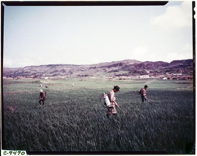 | Keywords: 17-38-1 Okinawan Farmers spray herbicides.jpg en 17-38-1 Okinawan laborers sponsored by Aid from the United States Civil Administration of the Ryukyu Islands spray insecticides on rice paddy 対琉球米国民政援助の沖縄人労働 水田に殺虫剤を散布している 1954-04-18 National Archives and Records Administration US Army communications photo shoot PD-USGov Uploaded with UploadWizard Insecticides United States Civil Administration of the Ryukyu Islands | ||||