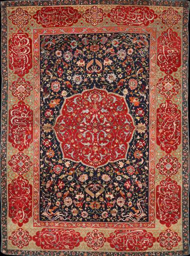 Keywords: 17-9 3-1964-Saltingtaeppe Photo-Pernille-Klemp-f.jpg Artwork en So-called Salting carpet wool silk and metal thread about 1600 226 × 162 cm About a ottepas-shaped medallion with arabesques is a rectangular panel with phoenixes and other exotic birds in tendrils with Chinese-inspired flowers The broadest of the three surrounding borders have ten fields with Persian verses written in Nastaliq - a mirror The color scheme is very varied and supplemented with silver thread The rug if decoration clearly reflects the Safavid court style around 1600 belongs to a group which for a time thought was Turkish copies 19th century older Persian originals This assumption has now been disproved by historical stylistic and especially technological arguments فرش ایرانی بیانگر هنر صفوی حدود ۱۶۰۰ میلادی در این فرش خط نستعلیق به کار برده شده است ابعاد این فرش 226 در 162 سانتی متر می باشد circa 1600 Institution Davids Samling http //www davidmus dk/assets/300/17-9_3-1964-Saltingtaeppe_Photo-Pernille-Klemp-f jpg other versions Assessments 1 cc-zero PD-old The David Collection Rectangular objects Birds in art Flowers in art Nastaliq Uploaded with UploadWizard Persian carpet Safavid art |