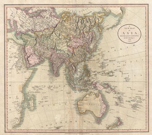 | Keywords: 1806 Cary Map of Asia, Polynesia, and Australia - Geographicus - Asia-cary-1806.jpg This is John Cary ™s stunning 1806 map of Asia Australia and Polynesia Covers from the Mediterranean to the Aleutian Islands and from the Arctic to South Africa Australia and New Zealand This beautifully rendered map is truly a masterpiece of engraving with mountain ranges lakes deserts and rivers excited with such precision that the result appears almost three dimensional Cary injects astounding detail throughout with countless towns cities geographical features rivers islands and bodies of water noted In desert regions fresh water sources are noted In the seas certain shoals and undersea are included In China and Manchuria the Great Wall appears Singapore islands is shown but not specifically named The Liakhov Islands in northern Siberia which some believed to be entirely composed of fossil mammoth ivory are noted as Shore Discovered by Hunters Published by John Cary in his 1808 Cary's New Universal Atlas 1806 dated Size in 21 18 5 object history credit line accession number Asia-cary-1806 Cary John <i>Cary's New Universal Atlas containing distinct maps of all the principal states and kingdoms throughout the World From the latest and best authorities extant </i> London Printed for J Cary Engraver and Map-seller No 181 near Norfolk Street Strand 1808 Geographicus-source PD-old-100 Maps by John Cary 1806 maps Old maps of Asia Old maps showing history of Oceania |