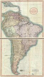 Keywords: 1807 Cary Map of South America - Geographicus - SouthAmerica-cary-1807.jpg A fine example of John Cary ™s spectacular 1807 two sheet map of South America Covers the entirety of South America on two sheets The upper sheet details the region from Cuba southwards as far as Lake Titicaca and Porto Bello Brazil Includes the Windward Isles or the Lesser Antilles The bottom sheet details from Porto Seguro Brazil southward as far as Patagonia and Tierra del Fuego Includes the Falkland Islands and South Georgia Island Both sheets offer stupendous detail of the interior with liberal reference to numerous indigenous tribal groups “ especially in the Amazon Color coded according to region Both sheets could be combined to form a single gigantic wall map of South America at the buyer ™s discretion All in all one of the most interesting and attractive atlas maps South America to appear in first years of the 19th century 1807 dated Size in 20 5 37 object history credit line accession number SouthAmerica-cary-1807 Cary John <i>Cary's New Universal Atlas containing distinct maps of all the principal states and kingdoms throughout the World From the latest and best authorities extant </i> London Printed for J Cary Engraver and Map-seller No 181 near Norfolk Street Strand 1808 Geographicus-source PD-old-100 1807 maps Old maps of South America 1807 1807 in South America 1807 Maps by John Cary |
