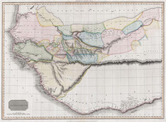 Keywords: 1813 Pinkerton Map of Western Africa (Niger Valley - Mountains of Kong) - Geographicus - WesternAfrica-pinkerton-1813.jpg This fascinating hand colored 1813 map by Edinburgh cartographer John Pinkerton depicts Western Africa Depicts Africa roughly from the Salve Coast and Gold coast west through the Ivory Coast Guinea the Gambia and north past Cape Verde as far as Senegal Including numerous fascinating Tribal references such as the Kingdom of Brak the residence of the King of Geba or Cabo the Foulahs of Guinea and the Maniana Cannibals among others Offers interesting inland detail along the Niger River as far east as Timbuktu Tombuctoo The continent is bisected by the dramatic and mythical Mountains of Kong which based upon the explorations of Mungo Parks were presumed to be the southern barrier to the Niger River valley Much of the rest of the continent is blank and as such unknown Published in November 1 1813 by Cadell and Davies for inclusion in Pinkerton ™s Modern Atlas 1813 dated Size in 28 20 5 object history credit line accession number WesternAfrica-pinkerton-1813 Geographicus-source PD-old-100 Maps by John Pinkerton Old maps of Guinea Old maps of Senegal Old maps of Mauritania Old maps of Mali Old maps of Liberia Old maps of Sierra Leone Old maps of Côte d'Ivoire Old maps of Ghana Old maps of Togo Old maps of Africa 1813 maps Maps in English Old maps of Guinea-Bissau |