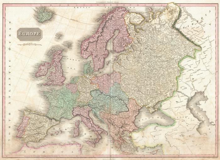 | Keywords: 1818 Pinkerton Map of of Europe - Geographicus - Europe-pinkerton-1818.jpg Pinkerton's extraordinary 1818 map of Europe Covers Europe at the beginning of the 19th century Offers considerable detail with political divisions and color coding at the regional level Identifies cities towns castles swamps mountains and river ways Title plate in the upper left quadrant A mile scale in British Statute Miles also appears in the upper left quadrant Drawn by L Herbert and engraved by Samuel Neele under the direction of John Pinkerton This map comes from the scarce American edition of Pinkerton ™s Modern Atlas published by Thomas Dobson Co of Philadelphia in 1818 1818 undated Size in 28 20 5 object history credit line accession number Europe-pinkerton-1818 Pinkerton J <i>A Modern Atlas from the Lates and Best Authorities Exhibiting the Various Divisions of the World with its chief Empires Kingdoms and States; in Sixty Maps carefully reduced from the Larges and Most Authentic Sources </i> 1818 Philadelphia Thomas Dobson Edition Geographicus-source PD-old-100 Maps by John Pinkerton Old maps of Europe 1818 maps |