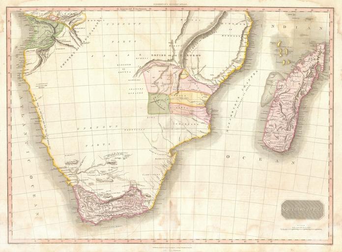 Keywords: 1818 Pinkerton Map of Southern Africa ( Congo, Monomotapa, Cape Colony ) - Geographicus - SouthernAfrica-pinkerton-1818.jpg This fascinating hand colored 1818 map by Edinburgh cartographer John Pinkerton depicts Southern Africa Covers Africa from Angola south to the Cape Colony modern South Africa and east to the Kingdom of Mongall modern day Mozambique and the island of Madagascar Reflecting the somewhat limited knowledge of the African interior available to European cartographers of the period only three areas are illustrated with any detail - the Congo the Cape Colony South Africa and the former Kingdom of Monomotapa which roughly overlaps modern day Mozambique The Congo had been actively mapped and exploited by Portuguese merchants as early as the 14th century South Africa similarly had an active Dutch and English presence since the earliest days of African Colonization The ancient Kingdom of Monomotapa here part of the Empire of the Bororos and divided into Sabia Sofala Munhay and Manica appears on most early maps of Africa Already a great trading Empire when Vasco de Gama rounded the Cape of Good hope in the 1490s Monomotapa or the regions between the Sabia Sofala and Zambezi River systems had long been associated with legends of King Solomon's Mines and the Biblical lands of Ophir In the 15th century the Zambezi hills were indeed rich in gold but these deposits had run out by the 1600s Still the European imagination inflamed by conquistador tales of golden empires in America made several attempts to conquer the region only to find that there was no more gold to be had In other areas of Africa's interior Pinkerton notes an embryonic Lake Malawi named Maravi and notes several important African tribal nations including the Massai the Hottentots the Bembe and the Luba Lubolo Drawn by L Herbert and engraved by Samuel Neele under the direction of John Pinkerton This map comes from the scarce American edition of Pinkerton ™s Modern Atlas published by Thomas Dobson Co of Philadelphia in 1818 1818 undated Size in 28 20 object history credit line accession number SouthernAfrica-pinkerton-1818 Pinkerton J <i>A Modern Atlas from the Lates and Best Authorities Exhibiting the Various Divisions of the World with its chief Empires Kingdoms and States; in Sixty Maps carefully reduced from the Larges and Most Authentic Sources </i> 1818 Philadelphia Thomas Dobson Edition Geographicus-source PD-old-100 Maps by John Pinkerton Old maps of Africa 1818 maps Old maps of Mozambique |
