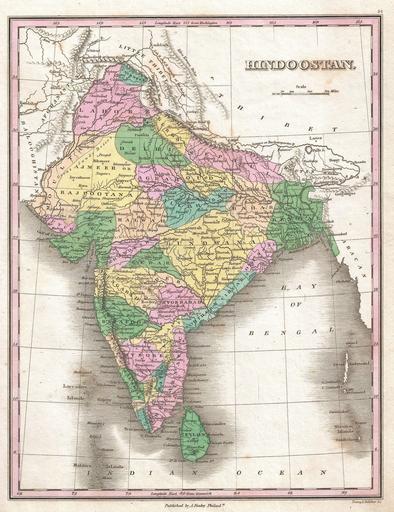 Keywords: 1827 Finley Map of India - Geographicus - Hindoostan-finely-1827.jpg A beautiful example of Finley's important 1827 map of India or Hindoostan Covers the subcontinent from Luddock south to Ceylon Sri Lanka Identifies numerous cities river systems deserts and mountain ranges Includes parts of adjacent Afghanistan Pakistan Tibet Nepal and Bhutan Offers color coding at the regional level Title and scale in upper right quadrant Engraved by Young and Delleker for the 1827 edition of Anthony Finley's General Atlas 1827 undated Size in 9 11 5 object history credit line accession number Hindoostan-finely-1827 Finley Anthony <i>A New General Altas Comprising a Complete Set of Maps representing the Grand Divisions of the Globe Together with the several Empires Kingdoms and States in the World; Compiled from the Best Authorities and corrected by the Most Recent Discoveries</i> Philadelphia 1827 Geographicus-source PD-old-100 Maps by Anthony Finley 1827 maps Old maps of South Asia Maps in English |