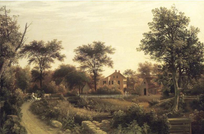 | Keywords: 1839 NewEnglandHomestead bySLGerry BrooklynMuseum.png New England Homestead Artist Samuel Lancaster Gerry American 1813-1891 Medium Oil on canvas Dates 1839 Dimensions 23 3/4 x 36 1/8 in 60 4 x 91 7 cm Brooklyn Museum 1839 Creator Samuel Lancaster Gerry Samuel Lancaster Gerry PD-old-100 |
