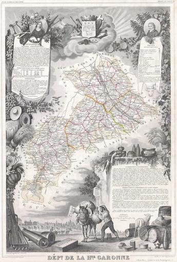| Keywords: 1847 Levasseur Map of the Dept. de la Haute Garonne, France - Geographicus - Garonne-levasseur-1847.jpg This is a fascinating 1847 map of the Department de la Haute Garonne France This region is known for its truffles agriculture distilled spirits wines and cheese The capital is Toulouse This region is also an important stop on the medieval pilgrimage route to Santiago de Compostella The whole is surrounded by elaborate decorative engravings designed to illustrate both the natural beauty and trade richness of the land There is a short textual history of the regions depicted on both the left and right sides of the map 1847 Size in 17 5 12 5 object history credit line accession number Garonne-levasseur-1847 Geographicus-source PD-old-100 <gallery>File 1852 Levasseur Map of the Department de La Hautes-Garonne France Buzet Wine Region - Geographicus - HautesGaronne-levasseur-1852 jpg</gallery> Victor Levasseur - Maps of France 1847 maps Old maps of Haute-Garonne Maps in French |