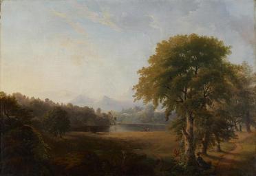 Keywords: 1850s, Duncanson, Robert S., Untitled (Landscape).jpg en Robert S Duncanson American 1821 “1872 Untitled Landscape late 1850s Oil on canvas 61 x 66 cm 24 x 26 in frame 92 3 × 120 5 × 7 5 cm 36 5/16 × 47 7/16 × 2 15/16 in Museum purchase Kathleen Compton Sherrerd Fund for Acquisitions in American Art and Mary Trumbull Adams Art Fund 2011-107 late 1850s Princeton University Art Museum Robert S Duncanson other versions PD-Art Uploaded with UploadWizard American art in the Princeton University Art Museum American paintings in the Princeton University Art Museum Paintings in the Princeton University Art Museum Robert Scott Duncanson |