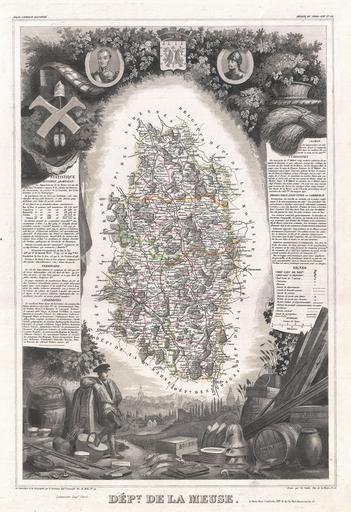 Keywords: 1852 Levasseur Map of the Department De La Meuse, France (Brie Cheese Region) - Geographicus - Meuse-levasseur-1852.jpg This is a fascinating 1852 map of the French department of Meuse France This area part of the Lorraine or Alsace-Lorraine wine regions It is also known for its production of Brie de Meaux cheeses In fact more than 60 of Brie de Meaux production takes place in this region The map proper is surrounded by elaborate decorative engravings designed to illustrate both the natural beauty and trade richness of the land There is a short textual history of the regions depicted on both the left and right sides of the map Published by V Levasseur in the 1852 edition of his Atlas National de la France Illustree 1852 undated Size in 12 18 object history credit line accession number Meuse-levasseur-1852 Levassuer V <i>Atlas National Illustre des 86 Departements et des Possessions de La France Divise par Arrondissements Cantons et Communea avec La Trace de Toutes Les Routes Chemins de fer et Canaux </i> 1852 edition Geographicus-source PD-old-100 1852 maps France Old maps of Meuse Maps in French France Historical images of Bar-le-Duc Coats of arms of Bar-le-Duc Victor Levasseur - Maps of France France |