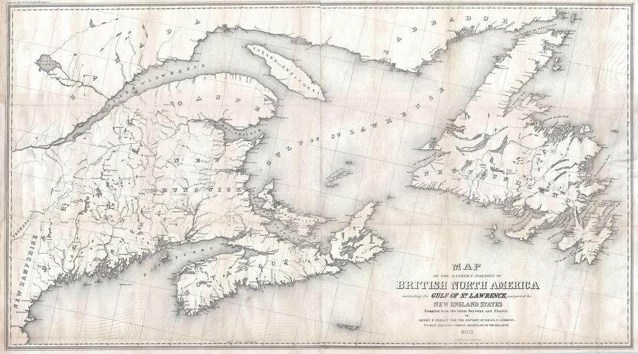 | Keywords: 1853 Andrews Map of the Maritime Provinces, New Brunswick, Nova Scotia, Newfoundland - Geographicus - MaritimeProvinces-andrews-1853.jpg A rare beautiful and gigantic map of the Canadian Maritime Provinces of New Brunswick Nova Scotia Newfoundland and Prince Edwards Island Also includes much of Quebec and parts of New York and New England Depicts from Quebec City and the mouth of the St Lawrence River eastward to the Maritime Provinces Offers magnificient detail with regard to the towns cities and rivers systems of this area Prepared by Henry Pearley for Israel D Andrews ™ Report to the Secretary of the Treasury 1853 dated Size in 47 26 object history credit line accession number MaritimeProvinces-andrews-1853 <i>Communication from the Secretary of the Treasury transmitting in compliance with a resolution of the Senate of March 8 1851 the Report of Israel D Andrews consul of the United States for Canada and New Brunswick on the Trade and Commerce of the British North American Colonies and upon the Trade of the Great Lakes and Rivers; also notices of the internal imporvements in each state of the Gulf of Mexico and the Straits of Florida and a Paper on the Cotton Crop of the United States </i> 1853 editon Geographicus-source PD-art Old maps of the Gulf of Saint Lawrence Old maps of New Brunswick Old maps of Nova Scotia Old maps of Newfoundland Old maps of Prince Edward Island 1853 maps of Canada |