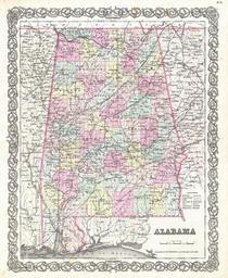 | Keywords: 1855 Colton Map of Alabama - Geographicus - Alabama-colton-1855.jpg A beautiful 1855 first edition example of Colton's map of Mississippi Covers the entire state as well as adjacent parts of Georgia and Mississippi Like most of Colton's state maps this map is largely derived from an earlier wall map of North America produced by Colton and D Griffing Johnson Colton identifies various cities towns forts rivers rapids fords and an assortment of additional topographical details Map is hand colored in pink green yellow and blue pastels to define county and state boundaries Surrounded by Colton's typical spiral motif border Dated and copyrighted to J H Colton 1855 Published from Colton's 172 William Street Office in New York City Issued as page no 31 in volume 1 of the first edition of George Washington Colton's 1855 Atlas of the World 1855 dated Size in 13 16 object history credit line accession number Alabama-colton-1855 Colton G W <i>Colton's Atlas of the World Illustrating Physical and Political Geography</i> Vol 1 New York 1855 First Edition Geographicus-source PD-art Old maps of Alabama 1855 maps |