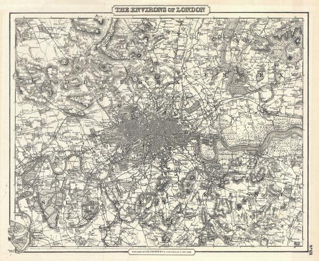 Keywords: 1855 Colton Map of London, England - Geographicus - London-cbl-1855.jpg An excellent example of Colton ™s c 1855 map of London and environs Includes parts of Surrey Kent Middlesex and Essex Extends north to Southgate east to Chadwell Heath south to Kingston Mitcham and Bromley and west to Harrow and Isleworth - on a scale of 5/8 of an inch to the mile The whole is beautifully detailed to the level of individual buildings trees canals and roads Includes topographical details as well as farms parks riverways and swamps This is most likely the one of the first maps of London to appear in an American atlas Copyrighted 1855 but most likely this was published for a post 1857 issued of Colton ™s Atlas Map no 69 in the single volume the c 1857 edition of Colton's Atlas of The World Published from Colton ™s 172 William Str Office in New York 1855 dated Size in 15 12 5 object history credit line accession number London-cbl-1855 <i>Colton's Atlas Of The World Illustrating Physical And Political Geography By George W Colton </i> 1857 or later edition Geographicus-source PD-old-100 Maps by Joseph Hutchins Colton Old maps of London 1855 maps |