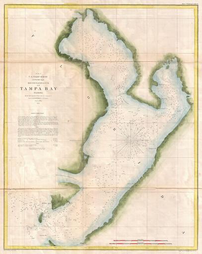 | Keywords: 1855 U.S. Coast Survey Chart or Map of Tampa Bay, Florida - Geographicus - TampaBay-uscs-1855.jpg A very attractive example of the 1855 U S Coast Survey nautical chart or map of Tampa Bay Florida Centered on Passage Point this map covers from St Helena and Tampa south to Mullet Key and Palm Key Chart notes various triangulation points and the proposed site of a rail depot on the western shore The city of Tampa is noted though at this stage development is minimal Countless depth soundings fill the bay To the left of the map below the title are detailed sailing instructions and notes on tides and shoals This is one of the earliest Coast Survey charts to focus on Tampa Bay The hydrography for this map was completed by O H Berryman The chart was produced under the supervision of A D Bache of the most prolific and influential Superintendents of the U S Coast Survey 1855 dated Size in 17 22 object history credit line accession number TampaBay-uscs-1855 <i>Report of the Superintendent of the United States Coast Survey </i> Washington 1855 Geographicus-source PD-art United States Coast Survey maps Old maps of Florida Tampa Bay 1855 maps |