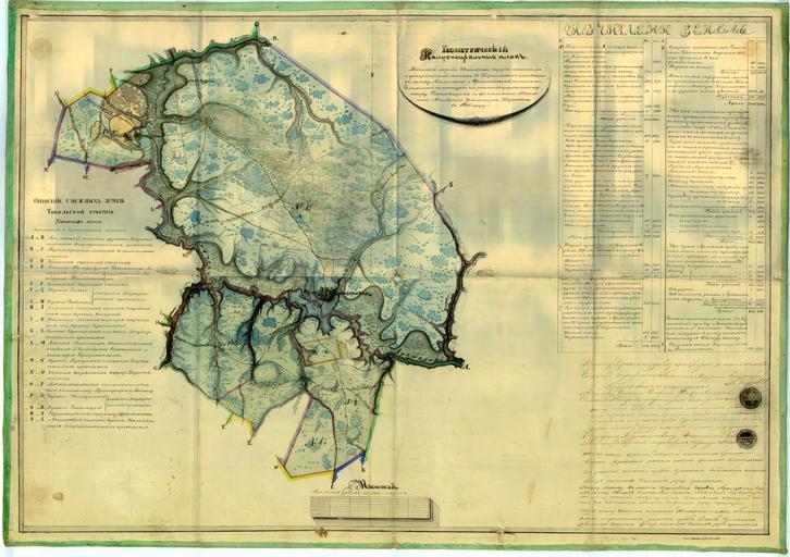 | Keywords: Карта Тобольского округа 1860 года.jpg LargeImage ru Геомет ический полуспециальный план Тобольской губе нии Тобольского ок уга казённым и фаб ичным землям господ Ко нильевых находящимся между Абалакской и Б онниковской волостями сочинённый с нату ы по екогнисци овочному обзо у состоящим в должности тобольского младшего землеме а Ка повым в 1860 году Госуда ственный а хив в г Тобольске Ф И-154 Оп 21 Д 180 Ка пов тобольский младший землеме 1860 год PD-old Old maps of Tobolsk Province | ||||