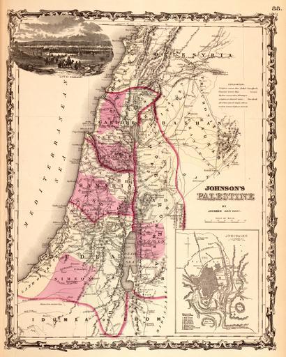 MAKE A MEME View Large Image Johnson Map of Palestine - Israel - Holy Land - Geographicus - Palestine-johnson-1864.jpg A beautiful example of A J Johnson ™s 1862 map of Palestine / Israel / Holy Land Details the region from Beirut south to Busaireh and Kadesh Barnea ...