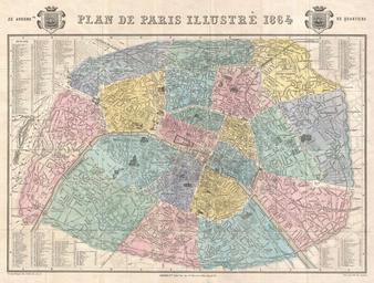 | Keywords: 1864 Garnier Map of Pairs, France w-Monuments - Geographicus - Paris-garnier-1864.jpg An extremely attractive map of Paris France issued in 1864 by the Garnier Freres Covers the old walled city of Paris and the immediate vicinity Important buildings are shown in profile All major streets are identified Color coded according to arrondissements The four corners are occupied by a street index The Coat of Arms of Paris appears in the upper right and left quadrants 1864 dated Size in 25 19 object history credit line accession number Paris-garnier-1864 Geographicus-source PD-art derivative works 1864 Garnier Map of Pairs France w-Monuments - Geographicus - Paris-garnier-1864 cropped jpg Maps of Paris in the 19th century 19th-century maps of Paris Old locator maps of arrondissements of Paris 1864 maps Paris in the 1860s |