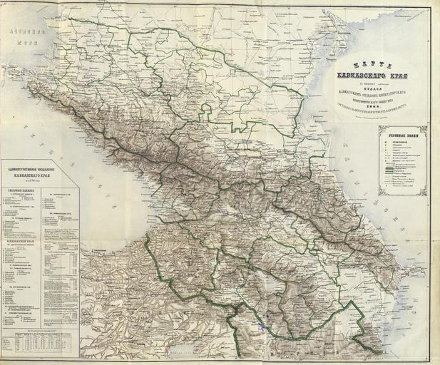 Keywords: Карта Кавказского края 1868г.jpg ru Ка та Кавказского к ая изданная Кавказским отделом Импе ато ского геог афического общества в 1868 году 1868-- Кавказский календа ь на 1879 год Тифлис 1877г Ку акин PD-Art Uploaded with UploadWizard Old maps |