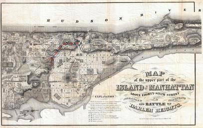 Keywords: 1868 Rogers Map of Manhattan, New York City (North of 86th St) - Geographicus - NYCHarlemHeights3-rogers-1868.jpg A stunning and rare 1868 Map of the northern part of the island of Manhattan New York city by W C Rogers Map covers the upper part of Manhattan above 86th street including Morningside Heights Manhattan Valley Harlem Inwood the Upper West Side the Upper East Side etc in extraordinary detail depicting streets buildings estates and in many cases individual trees This map is most certainly based upon the 1836 Topographical Map of the City and County of New York drawn by David H Burr and published by J H Colton Colton ™s map was perhaps the finest example of artistic mapmaking applied to the Island of Manhattan I N Phelps Stokes This map uses only the northern portion of Colton ™s map but features the same stunning detail Beautifully hand colored to illustrate the Battle of Harlem Heights This is the best map of northern Manhattan that we are aware of Prepared for inclusion in the 1868 edition of Joseph Shannon ™s Manual Of The Corporation Of The City of New York An important piece for collectors of New York City cartography 1868 dated Size in 23 5 15 object history credit line accession number NYCHarlemHeights3-rogers-1868 Geographicus-source PD-art 1868 maps Manhattan Battle of Harlem Heights David H Burr Old maps showing the West Side Line Old maps of Manhattan north of 155th Street |