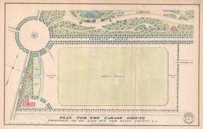 Keywords: 1868 Vaux and Olmstead's Map of the Prospect Park Parade Grounds, Brooklyn, New York - Geographicus - ParadeGround-bishop-1868.jpg An extremely scarce example of Vaux and Olmstead ™s map of the King County Parade Ground today known as the Prospect Park Parade Ground or the Prospect Park Base Ball Grounds The Parade Ground is bounded by Parade Place Franklin Avenue now Parkside Avenue Caton Avenue and Coney Island Avenue The Ground was designed by Olmsted and Vaux in conjunction with the adjacent Prospect Park The Parade Ground saw its first parade in 1867 when the 11th Brigade's Howitzer Battery strutted their stuff Although intended from the start as a military facility sports moved in early and by 1871 the Parade Ground was being described by Henry Chadwick as the finest free ball ground in the United States This map was published in the 1868 edition of William Bishop ™s Manual of the Common Council of the City of Brooklyn 1867 dated Size in 12 8 object history credit line accession number ParadeGround-bishop-1868 Bishop William <i>Manual of the Common Council of the City of Brooklyn 1864</i> 1864 Geographicus-source PD-art Old maps of Brooklyn New York City 1868 maps Brooklyn |