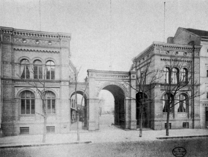 | Keywords: 1870ca F-A-Schwartz Eisenbahnbedarf.jpg de Eingangsportal und -gebäude der Aktiengesellschaft für Fabrication von Eisenbahnbedarf an der Chausseestraße 11 in Berlin Die Bauten wurden 1858/59 nach Entwürfen von C Ende und H Böckmann errichtet Aufnahme von F Albert Schwartz um 1870 Berlin wird Weltstadt/Photographien von F Albert Schwartz F Albert Schwartz 1836-1906 PD-old Friedrich Albert Schwartz Chausseestraße Berlin-Mitte Factories in Berlin-Mitte | ||||