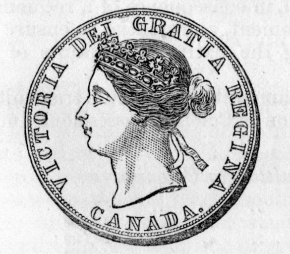 | Keywords: 1871 Canadian 50 cents obverse.png A Canadian fifty-cent piece of 1871 Weight 375 fineness 925 Value nearly 2s Obsverse shown Engraving from the article Recent Coinage of the World in the Companion to the British Almanac of 1874 1874 Name of coin designer or engraver not known PD-old Both faces Reverse Coins of Canada 1871 coins 1874 in Canada Obverses |