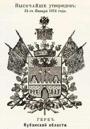 | Keywords: Кубанская обл 1874 из Винклера.jpg Official Russian Empire coat of arm Ге б Российской Импе ии Кубанской области в Ге бовнике Винкле а П П фон-Винкле Ге бы го одов губе ний областей и посадов Российской Импе ии внесенные в Полное Соб ание законов с 1649 по 1900 год Дозволено цензу ою С -Пете бу г 20 Июля 1899 года Издание книгото говца Ив Ив Иванова С -Пете бу г Типог афия И Комелова П яжка д 3 1899 \ Scanned by Vizu 1874 \ 1899 published П П фон Винкле \ Pavel von Vinkler PD-old PD-RusEmpire PD-RU-exempt <gallery> File Кубанская область из Бенке jpg File Кубанская область ВД Бенке jpg File Кубанская область изд Сукачова jpg File Kub obl gerb jpg </gallery> Gerbovnik Vinklera - Governorate Oblast CoAs Kuban Oblast |