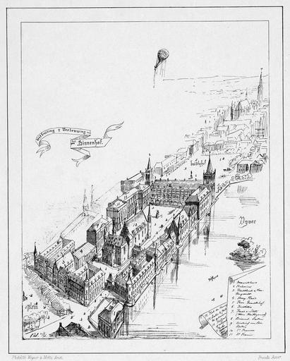 | Keywords: 1876. Plan voor uitbreiding en verbouwing van het Binnenhof, Den Haag.png nl In 1876 maakte Eduard Asser 1809-1894 een fotolithogravure van een nieuw- en verbouwplan voor het Binnenhof in Den Haag De onbekende ontwerper van dat plan probeerde daarbij zoveel mogelijk om de bestaande gebouwen in te passen en als eindresultaat een meer uniform geheel te creëren Hij ontzag daarbij onder andere de 13e-eeuwse Ridderzaal en het Mauritshuis maar ook de 18e-eeuwse gebouwen van de Tweede Kamer en de 17e-eeuwse vergaderzaal van de Eerste Kamer Op sommige plekken voegde hij slechts een torenspits toe om het geheel een meer samenhangend karakter te geven en In 1876 the Dutchman Eduard Asser 1809-1894 created a photolithograph of an expansion- and renovation plan for the Parliament Buildings in The Hague The unknown designer of that plan tried to fit within the existing buildings as fargoing as possible aiming to create a more uniform ensemble a final result He left the 13th-century Knight's Hall and the 17th-century Mauritshuis untoughed but also spared the 18th-century buildings of the Lower House and the 17th-century hall of the Senate At some places he only added a spire to give the whole a more coherent character de Im Jahr 1876 dem niederländischen Eduard Asser 1809-1894 machte ein Photolithographie von eines Expansions- und Erneuerungsplan für die Gebäude des Parlament und Senat in Den Haag Der unbekannten entwarfer versuchte innerhalb der bestehenden Gebäude wie möglich ein zu passen mit dem Ziel eine gleichmäßigere Komplex zu schaffen Er verließ das 13 Jahrhundert Rittersaal und die Mauritshuis 17 Jahrhundert unbeeinträchtigt und auch die Gebäude des Abgeordnetenhauses aus dem 18 Jahrhundert und die Halle aus dem 17 Jahrhundert des Senats ersparte er An manchen Stellen fügte er hinzu nur einen Turm um dem Ganzen eine kohärentere Charakter zu geben fr En 1876 le néerlandais Eduard Asser 1809-1894 conçu un photolithogravure d'un plan d'une concepteur inconnue pour l'expansion- et la rénovation des édifices du Parlement et du Sénat à La Haye Il a essayé de tenir dans les bâtiments existants comme dans la mesure du possible visant à créer un ensemble plus uniforme comme résultat final Il a quitté intacte le Salle des Chevaliers du 13ème siècle et le Mauritshuis du 17ème siècle mais il a aussi épargné les bâtiments des Parlement du 18ème siècle et la salle des Sénat du 17ème siècle Parfois il a seulement ajouté un clocher pour les bâtiments en vue de donner à l'ensemble un caractère plus cohérent 1876 Universiteitsbibliotheek Leiden Topografie van Nederland PK-P-138 064 Eduard Isaac Asser 1809-1894 other versions 52 37269 4 89299 Custom license marker 2015 09 06 PD-old-100-1923 Uploaded with UploadWizard Binnenhof in art Ridderzaal History of the Mauritshuis 1876 Hofvijver The Hague in the 1870s 1876 in the Netherlands Eduard Isaac Asser |