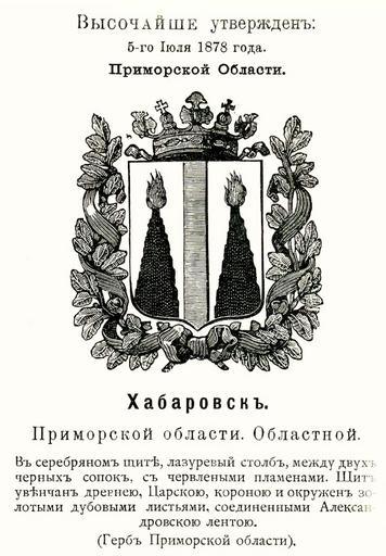 | Keywords: Хабаровск 1878 из Винклера.jpg Official Russian Empire coat of arms Khabarovsk Ге б обласного го ода Российской Импе ии Хаба овск П имо ской области 1878 года с официальным описанием в Ге бовнике Винкле а П П фон-Винкле Ге бы го одов губе ний областей и посадов Российской Импе ии внесенные в Полное Соб ание законов с 1649 по 1900 год Дозволено цензу ою С -Пете бу г 20 Июля 1899 года Издание книгото говца Ив Ив Иванова С -Пете бу г Типог афия И Комелова П яжка д 3 1899 \ Scanned by Vizu 1878\ 1899 published П П фон Винкле \ Pavel von Vinkler PD-old PD-RusEmpire PD-RU-exempt coats of arms <references/> Gerbovnik Vinklera - City CoAs 1878 Coats of arms of Primorsk Oblast Historical images of Khabarovsk |