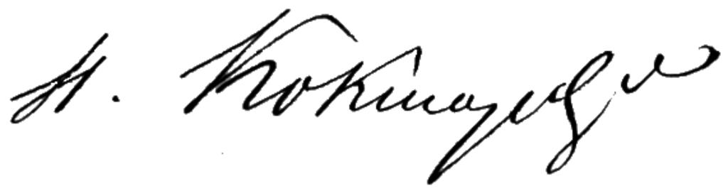 Keywords: 1890-KoksharovNI-Signature.png ru Кокша ов иколай Иванович - подпись 1890-01-02 Подпись или автог аф Кокша ов иколай Иванович other versions PD-old-70-1923 Signatures of people from Russia Nikolay Koksharov