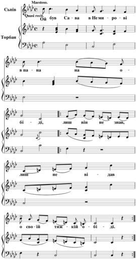 | Keywords: Зоря. Ноти. 1894. 06. IV. Про Саву Чалого.svg uk Ілюст ація до статті иколи Лисенка а одні музичні ст ументи на Вк аїнї оти думки Г его а Відо та П о Саву Чалого 1894-03-27 Зо я часопис 1894 06 с 135-136 икола Лисенко other versions Часопис Зо я 1894 06 pdf Hidden background ECECEC; white;color black border 1px grey solid; padding 2px Created by MuseScore <nowiki> < xml version 1 0 encoding UTF-8 > <museScore version 2 06 > <programVersion>2 0 2</programVersion> <programRevision>f51dc11</programRevision> <Score> <LayerTag id 0 tag default ></LayerTag> <currentLayer>0</currentLayer> <Synthesizer> </Synthesizer> <Division>480</Division> <Style> <staffUpperBorder>4</staffUpperBorder> <maxSystemDistance>6</maxSystemDistance> <TextStyle> <halign>center</halign> <valign>baseline</valign> <xoffset>0</xoffset> <yoffset>6</yoffset> <offsetType>spatium</offsetType> <name>Lyrics Odd Lines</name> <family>FreeSerif</family> <size>14</size> <bold>1</bold> <sizeIsSpatiumDependent>1</sizeIsSpatiumDependent> </TextStyle> <TextStyle> <halign>right</halign> <valign>center</valign> <offsetType>absolute</offsetType> <name>Instrument Name Long </name> <family>FreeSerif</family> <size>14</size> <bold>1</bold> <sizeIsSpatiumDependent>1</sizeIsSpatiumDependent> </TextStyle> <page-layout> <page-height>1791 5</page-height> <page-width>850 394</page-width> <page-margins type even > <left-margin>5 66929</left-margin> <right-margin>5 66929</right-margin> <top-margin>56 6929</top-margin> <bottom-margin>113 386</bottom-margin> </page-margins> <page-margins type odd > <left-margin>5 66929</left-margin> <right-margin>5 66929</right-margin> <top-margin>0</top-margin> <bottom-margin>0</bottom-margin> </page-margins> </page-layout> <Spatium>1 764</Spatium> </Style> <showInvisible>1</showInvisible> <showUnprintable>1</showUnprintable> <showFrames>1</showFrames> <showMargins>0</showMargins> <metaTag name arranger ></metaTag> <metaTag name composer ></metaTag> <metaTag name copyright ></metaTag> <metaTag name creationDate >2015-11-20</metaTag> <metaTag name lyricist ></metaTag> <metaTag name movementNumber ></metaTag> <metaTag name movementTitle ></metaTag> <metaTag name platform >Microsoft Windows</metaTag> <metaTag name poet ></metaTag> <metaTag name source ></metaTag> <metaTag name translator ></metaTag> <metaTag name workNumber ></metaTag> <metaTag name workTitle ></metaTag> <PageList> <Page> <System> </System> <System> </System> <System> </System> <System> </System> <System> </System> </Page> </PageList> <Part> <Staff id 1 > <StaffType group pitched > <name>stdNormal</name> </StaffType> <bracket type -1 span 0 /> </Staff> <trackName>Voice</trackName> <Instrument> <longName>Сьпів</longName> <trackName>Voice</trackName> <minPitchP>36</minPitchP> <maxPitchP>94</maxPitchP> <minPitchA>40</minPitchA> <maxPitchA>79</maxPitchA> <instrumentId>voice vocals</instrumentId> <Articulation> <velocity>100</velocity> <gateTime>100</gateTime> </Articulation> <Articulation name staccatissimo > <velocity>100</velocity> <gateTime>33</gateTime> </Articulation> <Articulation name staccato > <velocity>100</velocity> <gateTime>50</gateTime> </Articulation> <Articulation name portato > <velocity>100</velocity> <gateTime>67</gateTime> </Articulation> <Articulation name tenuto > <velocity>100</velocity> <gateTime>100</gateTime> </Articulation> <Articulation name marcato > <velocity>120</velocity> <gateTime>67</gateTime> </Articulation> <Articulation name sforzato > <velocity>120</velocity> <gateTime>100</gateTime> </Articulation> <Channel> <program value 52 /> <synti>Fluid</synti> </Channel> </Instrument> </Part> <Part> <Staff id 2 > <StaffType group pitched > <name>stdNormal</name> </StaffType> <bracket type 1 span 2 /> </Staff> <Staff id 3 > <StaffType group pitched > <name>stdNormal</name> </StaffType> <bracket type -1 span 0 /> </Staff> <trackName>Theorbo</trackName> <Instrument> <longName>То бан</longName> <trackName>Theorbo</trackName> <minPitchP>31</minPitchP> <maxPitchP>71</maxPitchP> <minPitchA>31</minPitchA> <maxPitchA>71</maxPitchA> <instrumentId>pluck theorbo</instrumentId> <StringData> <frets>13</frets> <string open 1 >31</string> <string open 1 >33</string> <string open 1 >35</string> <string open 1 >36</string> <string open 1 >38</string> <string open 1 >40</string> <string open 1 >41</string> <string open 1 >43</string> <string>45</string> <string>50</string> <string>55</string> <string>59</string> <string>52</string> <string>57</string> </StringData> <Articulation> <velocity>100</velocity> <gateTime>100</gateTime> </Articulation> <Articulation name staccatissimo > <velocity>100</velocity> <gateTime>33</gateTime> </Articulation> <Articulation name staccato > <velocity>100</velocity> <gateTime>50</gateTime> </Articulation> <Articulation name portato > <velocity>100</velocity> <gateTime>67</gateTime> </Articulation> <Articulation name tenuto > <velocity>100</velocity> <gateTime>100</gateTime> </Articulation> <Articulation name marcato > <velocity>120</velocity> <gateTime>67</gateTime> </Articulation> <Articulation name sforzato > <velocity>120</velocity> <gateTime>100</gateTime> </Articulation> <Channel> <program value 25 /> <synti>Fluid</synti> </Channel> </Instrument> </Part> <Staff id 1 > <Measure number 1 > <KeySig> <accidental>-4</accidental> </KeySig> <TimeSig> <subtype>1</subtype> <sigN>4</sigN> <sigD>4</sigD> <showCourtesySig>1</showCourtesySig> </TimeSig> <Tempo> <tempo>1 16667</tempo> <pos x -6 93636 y -1 75 /> <text>Maestoso </text> </Tempo> <Tempo> <tempo>2 66667</tempo> <followText>1</followText> <pos x -11 1364 y 6 5 /> <text>Quasi recit </text> </Tempo> <Chord> <durationType>eighth</durationType> <Lyrics> <pos x 0 359062 y 8 75 /> <text>Ой</text> </Lyrics> <Note> <pitch>72</pitch> <tpc>14</tpc> </Note> </Chord> <Chord> <dots>1</dots> <durationType>quarter</d