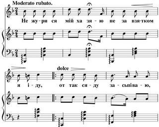 Keywords: Зоря. Ноти. 1894. 06. III. Відортова пісня.1.svg uk Ілюст ація до статті иколи Лисенка а одні музичні ст ументи на Вк аїнї оти думки Г его а Відо та Відо това пісня 1894-03-27 Зо я часопис 1894 06 с 135-136 икола Лисенко other versions Часопис Зо я 1894 06 pdf Hidden background ECECEC; white;color black border 1px grey solid; padding 2px Created by MuseScore <nowiki> < xml version 1 0 encoding UTF-8 > <museScore version 2 06 > <programVersion>2 0 2</programVersion> <programRevision>f51dc11</programRevision> <Score> <LayerTag id 0 tag default ></LayerTag> <currentLayer>0</currentLayer> <Synthesizer> </Synthesizer> <Division>480</Division> <Style> <staffUpperBorder>4</staffUpperBorder> <maxSystemDistance>8</maxSystemDistance> <TextStyle> <halign>center</halign> <valign>baseline</valign> <xoffset>0</xoffset> <yoffset>6</yoffset> <offsetType>spatium</offsetType> <name>Lyrics Odd Lines</name> <family>FreeSerif</family> <size>14</size> <bold>1</bold> <sizeIsSpatiumDependent>1</sizeIsSpatiumDependent> </TextStyle> <TextStyle> <halign>center</halign> <valign>baseline</valign> <xoffset>0</xoffset> <yoffset>6</yoffset> <offsetType>spatium</offsetType> <name>Lyrics Even Lines</name> <family>FreeSerif</family> <size>14</size> <bold>1</bold> <sizeIsSpatiumDependent>1</sizeIsSpatiumDependent> </TextStyle> <TextStyle> <halign>left</halign> <valign>baseline</valign> <xoffset>0</xoffset> <yoffset>-4</yoffset> <offsetType>spatium</offsetType> <name>Tempo</name> <family>FreeSerif</family> <size>14</size> <bold>1</bold> <sizeIsSpatiumDependent>1</sizeIsSpatiumDependent> <systemFlag>1</systemFlag> </TextStyle> <page-layout> <page-height>1060 16</page-height> <page-width>850 394</page-width> <page-margins type even > <left-margin>5 66929</left-margin> <right-margin>5 66929</right-margin> <top-margin>0</top-margin> <bottom-margin>0</bottom-margin> </page-margins> <page-margins type odd > <left-margin>5 66929</left-margin> <right-margin>5 66929</right-margin> <top-margin>0</top-margin> <bottom-margin>0</bottom-margin> </page-margins> </page-layout> <Spatium>1 764</Spatium> </Style> <showInvisible>1</showInvisible> <showUnprintable>1</showUnprintable> <showFrames>1</showFrames> <showMargins>0</showMargins> <metaTag name arranger ></metaTag> <metaTag name composer ></metaTag> <metaTag name copyright ></metaTag> <metaTag name creationDate >2015-11-20</metaTag> <metaTag name lyricist ></metaTag> <metaTag name movementNumber ></metaTag> <metaTag name movementTitle ></metaTag> <metaTag name platform >Microsoft Windows</metaTag> <metaTag name poet ></metaTag> <metaTag name source ></metaTag> <metaTag name translator ></metaTag> <metaTag name workNumber ></metaTag> <metaTag name workTitle ></metaTag> <PageList> <Page> <System> </System> <System> </System> </Page> <Page> <System> </System> <System> </System> <System> </System> </Page> </PageList> <Part> <Staff id 1 > <StaffType group pitched > <name>stdNormal</name> </StaffType> <bracket type -1 span 0 /> </Staff> <trackName>Voice</trackName> <Instrument> <trackName>Voice</trackName> <minPitchP>36</minPitchP> <maxPitchP>94</maxPitchP> <minPitchA>40</minPitchA> <maxPitchA>79</maxPitchA> <instrumentId>voice vocals</instrumentId> <Articulation> <velocity>100</velocity> <gateTime>100</gateTime> </Articulation> <Articulation name staccatissimo > <velocity>100</velocity> <gateTime>33</gateTime> </Articulation> <Articulation name staccato > <velocity>100</velocity> <gateTime>50</gateTime> </Articulation> <Articulation name portato > <velocity>100</velocity> <gateTime>67</gateTime> </Articulation> <Articulation name tenuto > <velocity>100</velocity> <gateTime>100</gateTime> </Articulation> <Articulation name marcato > <velocity>120</velocity> <gateTime>67</gateTime> </Articulation> <Articulation name sforzato > <velocity>120</velocity> <gateTime>100</gateTime> </Articulation> <Channel> <program value 52 /> <synti>Fluid</synti> </Channel> </Instrument> </Part> <Part> <Staff id 2 > <StaffType group pitched > <name>stdNormal</name> </StaffType> <bracket type 1 span 2 /> </Staff> <Staff id 3 > <StaffType group pitched > <name>stdNormal</name> </StaffType> <bracket type -1 span 0 /> </Staff> <trackName>Theorbo</trackName> <Instrument> <trackName>Theorbo</trackName> <minPitchP>31</minPitchP> <maxPitchP>71</maxPitchP> <minPitchA>31</minPitchA> <maxPitchA>71</maxPitchA> <instrumentId>pluck theorbo</instrumentId> <StringData> <frets>13</frets> <string open 1 >31</string> <string open 1 >33</string> <string open 1 >35</string> <string open 1 >36</string> <string open 1 >38</string> <string open 1 >40</string> <string open 1 >41</string> <string open 1 >43</string> <string>45</string> <string>50</string> <string>55</string> <string>59</string> <string>52</string> <string>57</string> </StringData> <Articulation> <velocity>100</velocity> <gateTime>100</gateTime> </Articulation> <Articulation name staccatissimo > <velocity>100</velocity> <gateTime>33</gateTime> </Articulation> <Articulation name staccato > <velocity>100</velocity> <gateTime>50</gateTime> </Articulation> <Articulation name portato > <velocity>100</velocity> <gateTime>67</gateTime> </Articulation> <Articulation name tenuto > <velocity>100</velocity> <gateTime>100</gateTime> </Articulation> <Articulation name marcato > <velocity>120</velocity> <gateTime>67</gateTime> </Articulation> <Articulation name sforzato > <velocity>120</velocity> <gateTime>100</gateTime> </Articulation> <Channel> <program value 25 /> <synti>Fluid</synti> </Channel> </Instrument> </Part> <Staff id 1 > <Measure number 1 > <KeySig> <accidental>-1</accidental> </KeySig> <TimeSig> <sigN>2</sigN> <sigD>4</sigD> <showCourtesySig>1</showCourtesySig> </TimeSig> <Tempo> <tempo>1 16667</tempo> <pos x -6 01102 y -1 45 /> <text>Moderato rubato </text> </Tempo> <Chord> <durationType>eighth</durationType> <Lyrics> <te