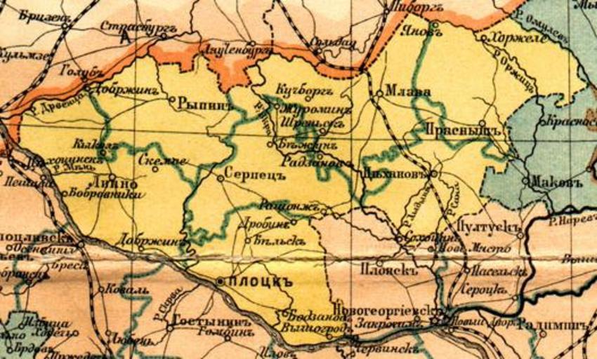 Keywords: Плоцкая губерния 1896.jpg Плоцская губе ния в 1896 году Genealogia Ru 2008-11-16 Yury Maydan PD-old Old maps of Congress Poland Powiat płocki