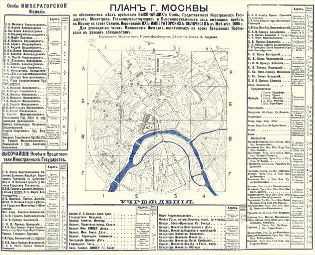 Keywords: 1896 moscow-radchenko.jpg ru План г осквы с обзначением мест п ебывания ВЫСОЧАЙШИХ Особ П едставителей Иност анных Госуда ств Главноначальствующих и Высокопоставленный лиц имеющих п ибыть в оскву во в емя Священ Ко онования ИХ И ПЕРАТОРСКИХ ВЕЛИЧЕСТВ в ае мес 1896 г Для уководства чинов осковского Почтамта назначенных во в емя Священного Ко онования к азным обязанностям составленный осковсктм Почт-Ди екто ом Действ Ст Совет К Радченко частная коллекция 1896 К Радченко ' PD-Old-100 Original upload log ru wikipedia ftcg page ru wikipedia 1896_moscow-radchenko jpg wikitable - 12 32 8 January 2014 6 892 × 5 588 7 749 138 bytes Gerodian w ru <nowiki> Изоб ажение Описание План г осквы с обзначением мест п ебывания ВЫСОЧАЙШИХ Особ П едставителей Иност анных Госуда ств Главно </nowiki> Old maps of Moscow 1896 maps