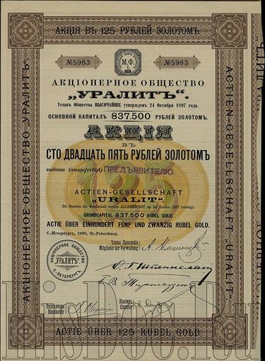 Keywords: 1897 акция уралит.jpg ru Акция акционе ного общества У алит 1897 год 2016-01-29 http //hisdoc net author other versions PD-old-70-1923 Stock certificates from Russia