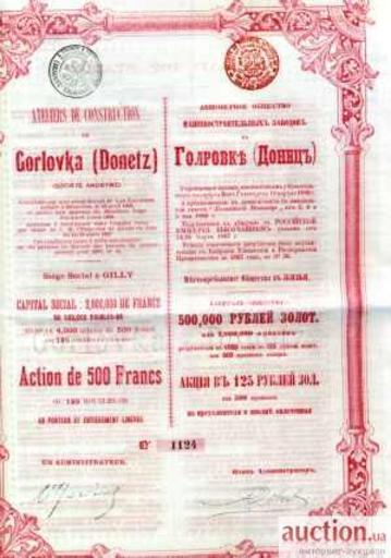 | Keywords: 1897. Горловка. АО Машиностроительных заводов. Номинал 125 рублей золотом.jpg Го ловка АО ашиност оительных заводов оминал 125 ублей золотом http //infodon org ua/postal/281 1897 author PD-RusEmpire Stock certificates from Donetsk Oblast Files uploaded by Andrew Butko from various sources 19th century 1897 in Horlivka Industry in Horlivka Images from infodon org ua | ||||