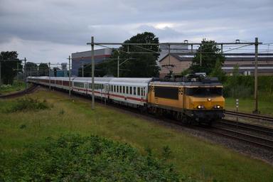 | Keywords: cnl 419 harselaar barneveld noord citynightline nachttrein overnighttrain nachtzug 1751 slaaptrein outdoor vehicle train railroad locomotive Na het bezoek aan Den Haag, werd er 's avonds nog even naar Barneveld Noord getrokken. Door de werkzaamheden bij Utrecht moesten de ICE's en CNL weer eens worden omgeleid. Aangezien de laatste nachttrein met slaaprijtuigen van Nederland per december gaat verdwijnen, is de CityNightLine wel een foto waard. Mooi op tijd komt de omgeleide CNL 419 hier langs Barneveld Noord/Harselaar gereden, om zijn weg te vervolgen richting Deventer en Arnhem. Daar wordt de 1751 losgekoppeld, en gaat de Traxx 186 237 die hier al achterop hangt de trein verder Duitsland in trekken. De kruising met de trein naar Schiphol Airport ging overigens maar net goed; achter de rijtuigen is de IC3 nog te zien. Na het bezoek aan Den Haag, werd er 's avonds nog even naar Barneveld Noord getrokken. Door de werkzaamheden bij Utrecht moesten de ICE's en CNL weer eens worden omgeleid. Aangezien de laatste nachttrein met slaaprijtuigen van Nederland per december gaat verdwijnen, is de CityNightLine wel een foto waard. Mooi op tijd komt de omgeleide CNL 419 hier langs Barneveld Noord/Harselaar gereden, om zijn weg te vervolgen richting Deventer en Arnhem. Daar wordt de 1751 losgekoppeld, en gaat de Traxx 186 237 die hier al achterop hangt de trein verder Duitsland in trekken. De kruising met de trein naar Schiphol Airport ging overigens maar net goed; achter de rijtuigen is de IC3 nog te zien. |