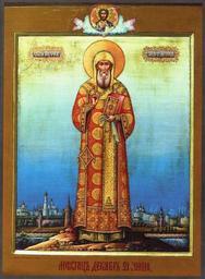 | Keywords: Петр митрополит Московский 1901.jpg en Saint Petr of Moscow Russian icon 1901 Святый Пет мит ополит осковский чюдотво ец есяц декаб ь 21 число память Русская п авославная икона цветная литог афия own scan / жу нал С Д Дн-ск 1901 Д PD-old-70 PD-RusEmpire 20th-century icons of Russia Icons with Moscow Kremlin Icons of Peter of Kiev Icons of Mstera |