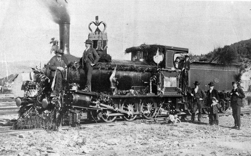 | Keywords: blackandwhite monochrome steam engine outdoor vehicle train locomotive black and white C loco dressed overall for the railway employees picnic, Zeehan. L Gray Williams photo C loco dressed overall for the railway employees picnic, Zeehan. L Gray Williams photo |