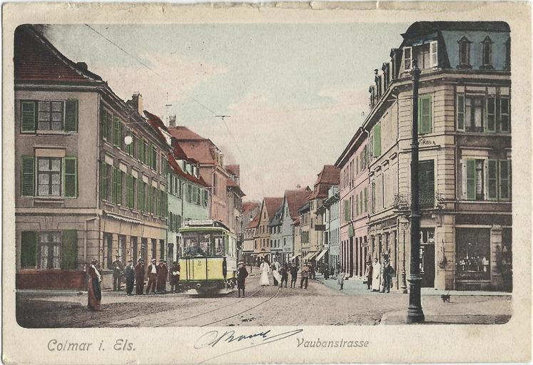 Keywords: 19050213 colmar vaubanstrasse.jpg fr Vue de Colmar au début du XXe siècle carte postale 1905-02-12 dated by the sender of the postcard and by the postmark COLMAR 13 2 05 9-10V Vintage postcards private collection author other versions 48 4 47 2 N 7 21 45 E region FR_heading SW PD-old-70-1923 Rue Vauban Colmar Trams in Colmar Postcards of Colmar Haut-Rhin in the 1900s Historical images of Colmar Postcards uploaded by user Jean Housen Uploaded with UploadWizard |