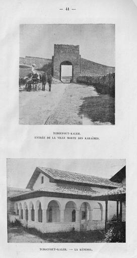 | Keywords: baye joseph bayejoseph ethnography 1895 crimée крым 1894 барон де бай барондебай crimea этнография ргб российская государственная библиотека российскаягосударственнаябиблиотека rsl russian state library russianstatelibrary чуфут-кале чуфуткале chufut-kale chufutkale çufut qale çufutqale караимы кенасса blackandwhite monochrome text outdoor black and white En Crimee / par le baron de Baye. - Librairie Nilsson, 1906. - 55 с. search.rsl.ru/ru/record/01004437359 Википедия: До 1911 года молитвенный дом караимов называли синагогой. В 1892 г. трокскими караимами была подана петиция о переименовании караимских «синагог» в «кенасы»[3]. На этот запрос было послано письмо гахама Панпулова от 31.12.1893, как его ответ на просьбу Трокского гахама о переименовании синагог в кенассы. Письмо предназначено министру внутренних дел[4]. В 1911 году гахам С. М. Панпулов обратился в МВД с ходатайством о переименовании караимских «синагог» в «кенасы». В связи с этим ДДДИИ МВД отправило запрос в адрес и. о. Трокского и Виленского караимского гахама И. Н. Фирковича, который заявил, что слово «кенаса» происходит от корня древнееврейского глагола «канос» (собирать) и что в средневековых караимских летописях кенаса «служила наименованием мест общественного богослужения караимов»[5]. Ныне караимы используют преимущественно термин «кенаса» («кенеса», «кенасса») или "бет гакнесет, (ивр. בית הכנסת), буквально -«дом собрания» (первоначальное древнееврейское название синагоги, употребляемое также раввинистами). En Crimee / par le baron de Baye. - Librairie Nilsson, 1906. - 55 с. search.rsl.ru/ru/record/01004437359 Википедия: До 1911 года молитвенный дом караимов называли синагогой. В 1892 г. трокскими караимами была подана петиция о переименовании караимских «синагог» в «кенасы»[3]. На этот запрос было послано письмо гахама Панпулова от 31.12.1893, как его ответ на просьбу Трокского гахама о переименовании синагог в кенассы. Письмо предназначено министру внутренних дел[4]. В 1911 году гахам С. М. Панпулов обратился в МВД с ходатайством о переименовании караимских «синагог» в «кенасы». В связи с этим ДДДИИ МВД отправило запрос в адрес и. о. Трокского и Виленского караимского гахама И. Н. Фирковича, который заявил, что слово «кенаса» происходит от корня древнееврейского глагола «канос» (собирать) и что в средневековых караимских летописях кенаса «служила наименованием мест общественного богослужения караимов»[5]. Ныне караимы используют преимущественно термин «кенаса» («кенеса», «кенасса») или "бет гакнесет, (ивр. בית הכנסת), буквально -«дом собрания» (первоначальное древнееврейское название синагоги, употребляемое также раввинистами). En Crimee / par le baron de Baye. - Librairie Nilsson, 1906. - 55 с.
