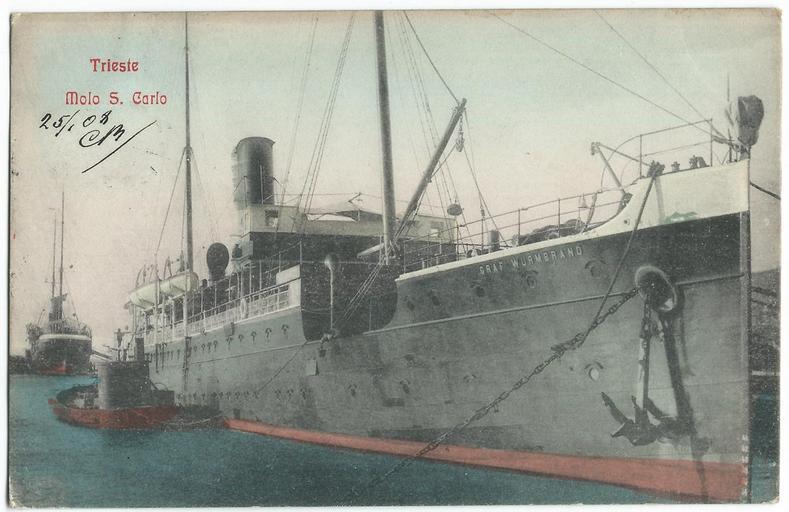 Keywords: 19080125 trieste molo s carlo.jpg fr Vue de Trieste au début du XXe siècle 1908-01-25 Vintage postcards private collection author other versions PD-old-70-1923 Port of Trieste Graf Wurmbrand ship 1895 Ships in Trieste Molo Audace Trieste Postcards of Austria-Hungary Trieste in the 1900s Postcards uploaded by user Jean Housen Uploaded with UploadWizard |