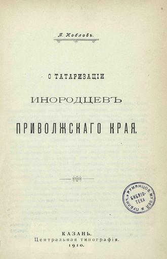 | Keywords: Коблов, Яков Дмитриевич (1876-). О татаризации инородцев Приволжского края / Я. Коблов. - Казань : Центр. тип., 1910. - 27 с.; 22. <a href="http://dlib.rsl.ru/rsl01003000000/rsl01003768000/rsl01003768730/rsl01003768730.pdf" rel="nofollow">dlib.rsl.ru/rsl01003000000/rsl01003768000/rsl01003768730/...</a> 1910 ленинка ргб оцифровка электронныйресурсргб историяказани коблов историятатарстана | ||||
