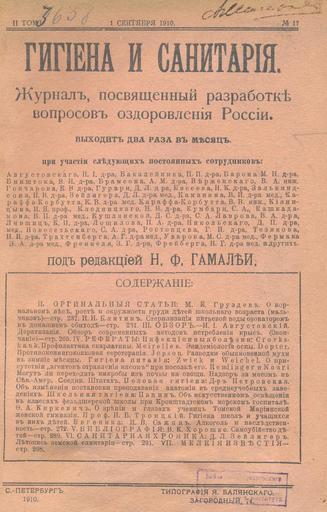 | Keywords: Гигиена и санитария. 1910. №17. — Тит. лист.jpg Image page PD-RusEmpire Magazines of Russia 1910 Title pages from Russia Medical journals Title pages uploaded by Steven Pavlov from various sources Magazines published in Saint Petersburg Magazines of Russia to be categorised by name |