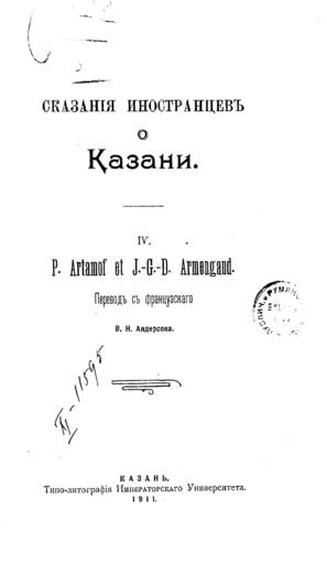 Keywords: rsl russian state library russianstatelibrary russian empire russianempire катанов казань kazan tatar 1911 katanov ргб электронный ресурс ргб электронныйресурсргб российская империя российскаяимперия российская государственная библиотека российскаягосударственнаябиблиотека перевод blackandwhite monochrome text black and white P. Artamof et J.-G.-D. Armengaud / Пер. с фр. В.Н. Андерсона. - 1911. - 15 с. Катанов, Николай Федорович (1862-1922). Сказания иностранцев о Казани : 1-3 / [Н. Катанов]. - [Казань] : типо-лит. Имп. Казанск. ун-та, 1903-1911. - 2 т.; 24 Источник: РГБ dlib.rsl.ru/rsl01003000000/rsl01003972000/rsl01003972650/... P. Artamof et J.-G.-D. Armengaud / Пер. с фр. В.Н. Андерсона. - 1911. - 15 с. Катанов, Николай Федорович (1862-1922). Сказания иностранцев о Казани : 1-3 / [Н. Катанов]. - [Казань] : типо-лит. Имп. Казанск. ун-та, 1903-1911. - 2 т.; 24 Источник: РГБ dlib.rsl.ru/rsl01003000000/rsl01003972000/rsl01003972650/... |